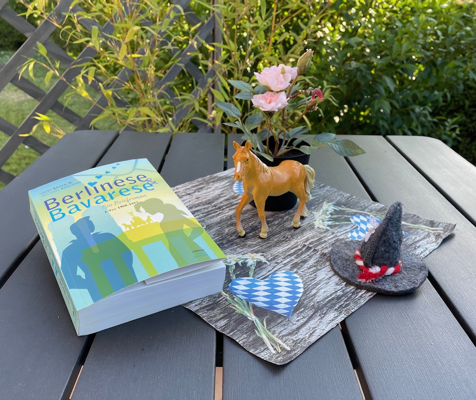 Wenn Freunde ein Buch auf Reisen mitnehmen und überall fotografieren, dann freuen sich die Autoren! So geschehen mit unserem Briefroman „Berlinese & Bavarese“. Die Berlinerin und der Bayer sind zwar im 1. Teil, der Teenager-Zeit von 1968 bis 1977, nicht soooo weit gereist. Aber immerhin haben sie sich am Gardasee kennengelernt, haben Griechenland (Max, der Münchner) und Frankreich (Linda, die Berlinerin) erkundet. Hinzu kamen die üblichen Flugreisen dieser Zeit – nach Mallorca und Ibiza (Linda) bzw. etwas verunglückte Tramp-Touren nach Wien (Max). Und auch immer wieder Italien. Die autolose Familie von Max fuhr dorthin immer mit dem Zug. Vorbildlich aus heutiger Sicht.
